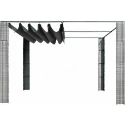 Pergola HHG-412, Anbaupergola Garten Pavillon Terrassenüberdachung Sonnenschutz, 3x3m ~ Creme