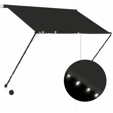 Diese einziehbare Markise ist der ideale Schattenspender, entweder vor einem Fenster, auf der Terrasse, dem Balkon oder in Ihrem Garten. Diese wasser-, UV- und wetterbeständige Markise ist aus hochwertigem Gewebe mit PA-Beschichtung gefertigt. Der robuste Stahlrahmen verleiht der Markise Stabilität und Langlebigkeit. Das leicht zu reinigende Sonnendach kann abgenommen und gewaschen werden. Dieses Produkt kann nicht nur als normale Markise, sondern auch zur vollständigen Abdeckung des Fensters verwendet werden. Dank der Stützstange und Kette, ist diese Markise einziehbar. Die Höhe und der Winkel der Markise können ebenfalls angepasst werden, um den Schatten zu maximieren. Darüber hinaus sorgen die solarbetriebenen LED-Leuchten im Dunkeln für energiesparende Beleuchtung. Der Artikel ist einfach zusammenzubauen. Dieses Produkt sollte auf glatten und flachen Oberflächen montiert werden.