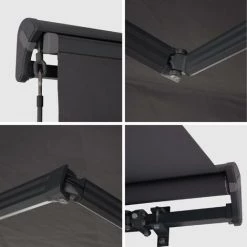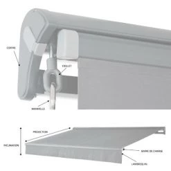 Außerdem hat diese Markise eine lange Lebensdauer. In der Tat sind die Hauptteile, wie Gelenkarme und die Rolle, für eine erhöhte Robustheit aus Aluminium gefertigt. Die Stützen, Klemmen und Halterungen sind aus Aluminiumguss gefertigt.