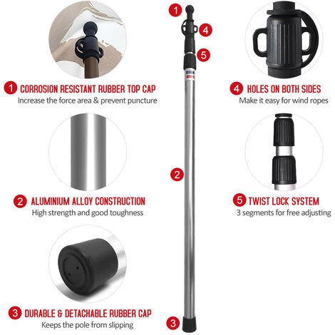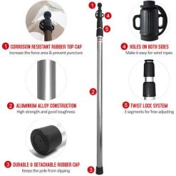 Die Höhe der Zeltstange kann an verschiedene Anlässe und Bedürfnisse angepasst werden. Geeignet für Rucksackreisen, Wandern, Camping, Hängematten, Unterstände oder Markisen.