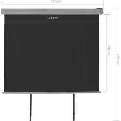 Der Sichtschutz ist aus haltbaren Aluminium, strapazierfähiges Polyestergewebe und PA-Beschichtung hergestellt und es ist stabil, UV- und witterungsbestädig. Die Markise lässt sich mit Leichtigkeit auf ihre volle Länge herausziehen. Nach dem Gebrauch rollt die Markise automatisch in die Kassette zurück. Dank der speziell entwickelten Wandhalterung kann der Wind-/Sichtschutz sowohl horizontal als auch vertikal positioniert werden. Mit einer leichten Bewegung kann das Rollo aus seiner Halterung herausgenommen werden.