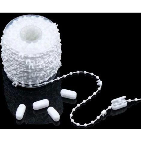 20 meters Vertical blind chain: 20 meters chain of vertical links wrapped in a white plastic barrel, with 5 pieces of plastic chain connectors.