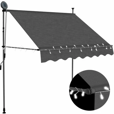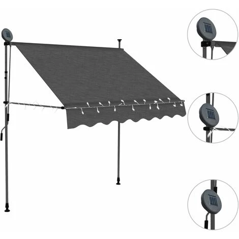 Diese manuell einziehbare Markise ist der ideale Schattenspender, entweder vor einem Fenster, auf der Terrasse, dem Balkon oder in Ihrem Garten. Diese wasser- und schmutzabweisende sowie UV- und wetterbeständige Markise besteht aus hochwertigem Polyester mit PU-Beschichtung. Der starke Stahlrahmen macht die Markise robust und langlebig. Das leicht zu reinigende Polyesterverdeck kann entfernt und gewaschen werden. Dank der Griffkurbel ist diese Markise einziehbar. Die Höhe und der Winkel der Markise können ebenfalls eingestellt werden. Darüber hinaus sorgen die solarbetriebenen LED-Leuchten nachts für energiesparende Beleuchtung. Die Markise ist leicht zu montieren. Diese Markise ist die perfekte Wahl für Ihren Außenbereich; sie lässt sich einfach von Hand bedienen.