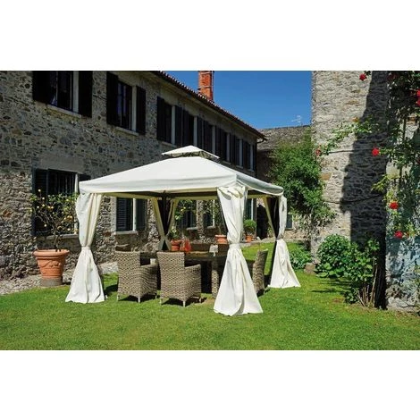 Dieser Pavillon hat eine Aluminium struktur und ist ideal, um Tage mit Freunden und Familie geschützt vor der Sonne zu verbringen, Mittagessen, Abendessen und vieles mehr zu organisieren.