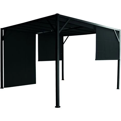 Pergola-Pavillon 4×3 m aus schwarz lackiertem Metall mit seitlichen Vordächern