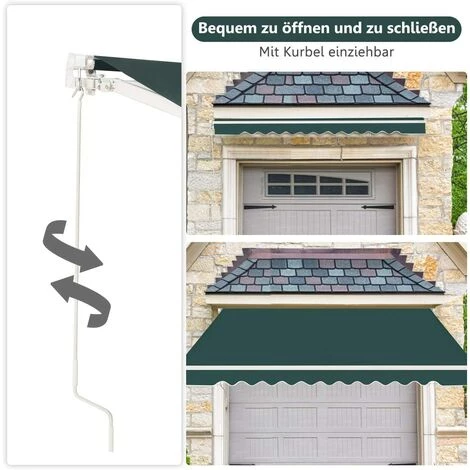 【Einziehbares Design für Bequeme Nutzung】 Die Markise kann zu einer Rolle eingezogen werden, wenn Sie sie gerade nicht brauchen. Ausgestattet mit einem langen Kurbelgriff, ist die Markise einfach und geschmeidig zu öffnen und zu schließen. Sie müssen lediglich die Kurbel im oder gegen den Uhrzeigersinn drehen.