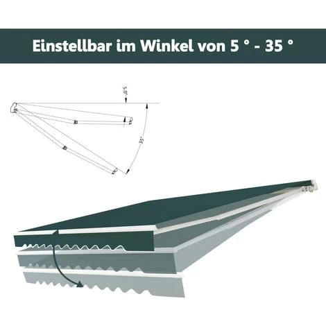 Suchen Sie nach einer Markise für Ihren Dachvorsprung? Unsere einziehbare Markise ist eine großartige Wahl. Hergestellt aus leichtgewichtigem und doch stabilem Aluminium und hochwertigem Polyester ist die Markise beständig und kann für eine lange Zeit verwendet werden. Indem sie einen großen Unterstand schafft, ist die Markise das ideale Mittel zum Erzeugen von Schatten. Außerdem ist sie mit einer langen Handkurbel ausgestattet, zum öffnen und schließen der Markise innerhalb einer Minute. Zusätzlich kann der Winkel des Unterstandes in einem Bereich von 5-35 Grad angepasst werden. Die Markise kann an einer Vielzahl von Oberflächen angebracht werden, so wie zum Beispiel an Zement- oder Steinwänden.