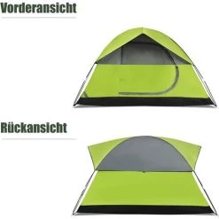 Durch das feste Polyester und den abnehmbaren Regenschutz gelangt das Wasser nicht ins Innere des wasserdichten Zeltes, sodass Sie stets trocken bleiben. Durch die Netzöffnungen wird eine gute Luftzirkulation gewährleistet, außerdem staut sich so keine Feuchtigkeit an. Dieses Zelt für 4 Personen wird mit einer großen Tasche geliefert, in der es sich zusammen mit dem Zubehör verstauen lässt. Mit den zwei Seilen und sechs Heringen lässt es sich in Minutenschnelle aufbauen. Durch die Tasche können Sie das Zelt zudem überallhin transportieren.