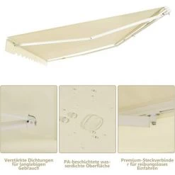 - Das hochwertige Aluminiumgemisch und der Stoff machen die Markise widerstandsfähig