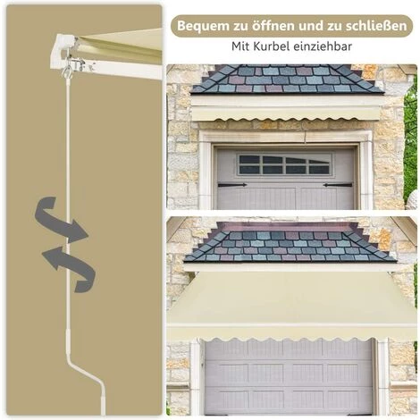 - 【Einziehbares Design für Bequeme Nutzung】 Die Markise kann zu einer Rolle eingezogen werden, wenn Sie sie gerade nicht brauchen. Ausgestattet mit einem langen Kurbelgriff, ist die Markise einfach und geschmeidig zu öffnen und zu schließen. Sie müssen lediglich die Kurbel im oder gegen den Uhrzeigersinn drehen.
