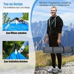 - Das Sofortzelt kann in 1 Minute auf- und abgebaut werden, was Zeit und Mühe spart