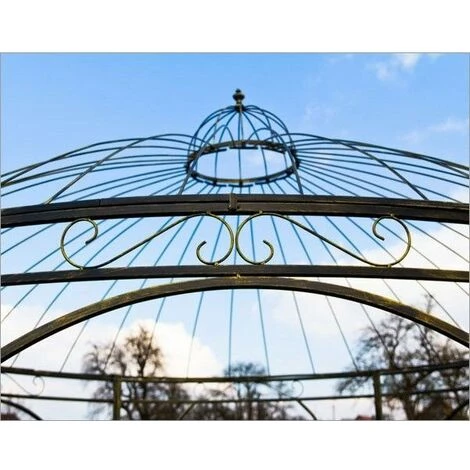 Dieser Metallpavillon im antiken Look wird der Blickfang in Ihrem Garten werden. Umgeben von bunten Blumen auf einem Bankett aus Kies stehend, wird dieser Metallpavillon eine Oase der Entspannung. Genießen Sie, zum Beispiel bei einem Glas Wein mit Ihrem Partner, den Sonnenuntergang an langen Abenden.