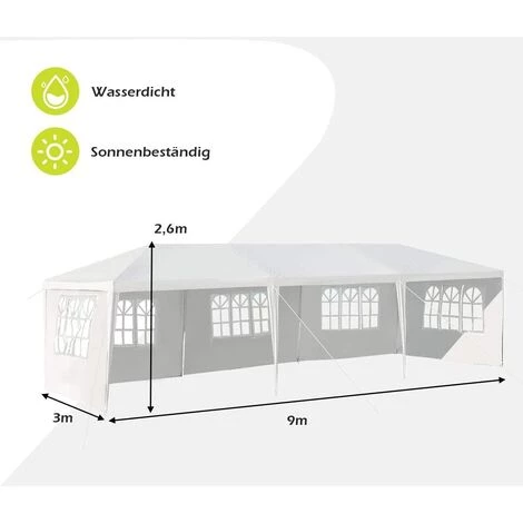 - Ein Zelt mit einer Größe von 3 × 9 × 2,6 m