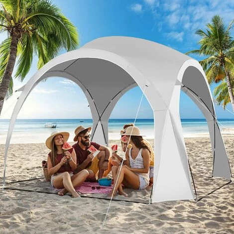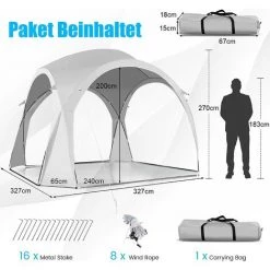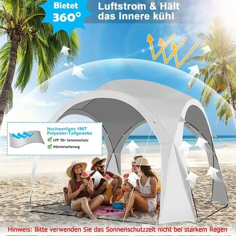 - Großes Strandzelt für die Familie: Unser 327 cm x 327 cm großes Strandzelt verfügt über ein gewölbtes Design, das die Schattenabdeckung verbessert. Darüber hinaus bietet das Zelt einen riesigen internen Aktivitätsbereich für 6-8 Personen zum Ausruhen und Spielen. Die Innenhöhe des Zeltes beträgt 270 cm, und Erwachsene, die hineingehen, sehen nicht beengt aus.