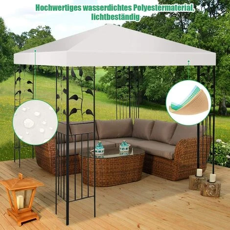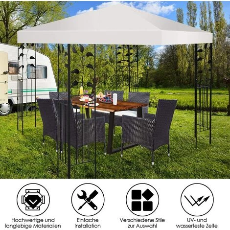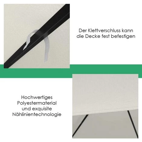- Riesige Fläche: Dieses Dach dehnt sich auf eine Fläche von 3x3m aus, die gleichzeitig einen großen Platz für viele Personen bietet. Es ist der beste Helfer für Ihre Gartenparty, Sie können Tische und Stühle darunter stellen und Ihre Freunde eine Pause machen lassen.