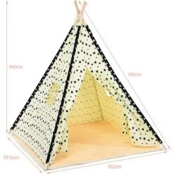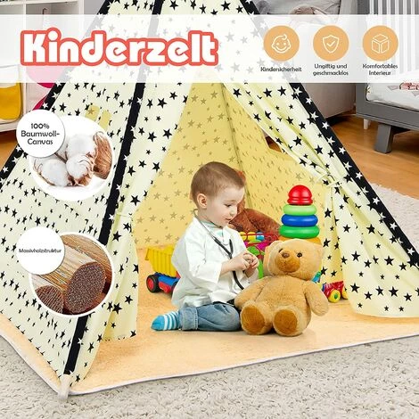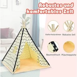 Dieses Stern-Spielzelt mit Bodenmatte von GOPLUS wird Ihren Kindern viel Freude bereiten. Es ist kinderleicht auf- und abzubauen und bietet vielseitige Einsatzmöglichkeiten. Die Kleinen können in dem Zelt ein Buch lesen, ein Nickerchen machen, Spiele spielen und viele lustige Momente erleben. Es kann aber auch für Hunde oder Katzen genutzt werden. Das Fenster auf dem Zelt garantiert eine sichere Überwachung und eine gute Luftzirkulation. Für die Stabilität sorgen die vier Stangen aus Kiefernholz und die rutschfesten Untersetzer. Wenn das Zelt mitgenommen oder verstaut werden soll, kann es einfach gefaltet werden. Für mehr Inspiration und endlosen Spielspaß – das Indianerzelt von GOPLUS.