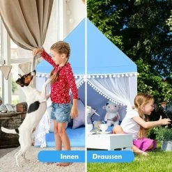 Dieses Kindersipelhaus ist nicht nur eine Kindermärchenwelt. Es ist auch ein perfektes Geschenk für Mädchen oder Jungen. In diesem unabhängigen Wachstumsraum können die Kinder Lesen, Spielen oder Schlafen. Denn die weiche Matte bietet ein komfortables Erlebnis. Das Netzgewebe der Fenster und des Vorhangs verhindert, dass Insekten in das Innere gelangen. Deshalb ist unser Kinderzelt nicht nur für Zuhaus, sondern auch ideal für Garten, Innenhof oder im Park. Dank der Kombination aus widerstandsfähiger Verarbeitung und hochwertigem Material verspricht dieses Spielhaus eine robuste Konstruktion und lange Lebensdauer.