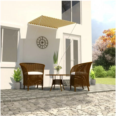 Diese einziehbare Markise ist der ideale Schattenspender, entweder vor einem Fenster, auf der Terrasse, dem Balkon oder in Ihrem Garten. Diese wasser-, UV- und wetterbeständige Markise ist aus hochwertigem Gewebe mit PA-Beschichtung gefertigt. Der robuste Stahlrahmen verleiht der Markise Stabilität und Langlebigkeit. Das leicht zu reinigende Sonnendach kann abgenommen und gewaschen werden. Dieses Produkt kann nicht nur als normale Markise, sondern auch zur vollständigen Abdeckung des Fensters verwendet werden. Dank der Stützstange und Kette, ist diese Markise einziehbar. Höhe und Neigungswinkel der Markise können dabei angepasst werden. Das Produkt ist einfach zu montieren. Dieser Artikel sollte auf glatten und flachen Oberflächen angebracht werden.