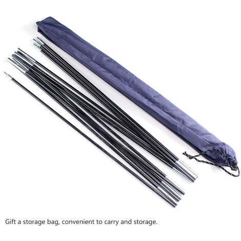 Dieser Zeltstangensatz besteht aus Glasfaser, ist langlebig und korrosionsbeständig und nicht leicht zu brechen. Mit einer dehnbaren Schnur, um jedes Stück der Stange zu verbinden, einfaches Design, leicht zu montieren und zu demontieren.