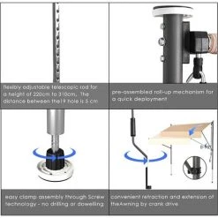 - 【EINFaACHE MONTAGE】Kein Bohren oder Dübeln, also keine Beschädigung Ihres Wohnobjekts. Nach einfacher Montage kann die Markise fest stehen.