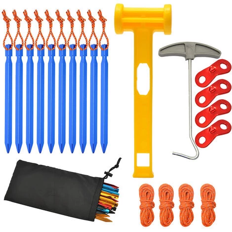 [Paket enthalten] -10 dreiseitige Bodennägel + 1 Aufbewahrungstasche + 1 Kunststoffhammer + 1 Nagelzieher + 4 winddichte Seile (mit reflektierender Wirkung) + 4 Doppelaugenknöpfe, ein komplettes Set von Outdoor-Camping-Tools. [Hochwertiges Material] -Hochwertige Aluminiumlegierung, ultraleicht, aber stark. Ausgezeichnete Funktionalität, hergestellt aus hochwertigen Materialien, mit bester Haltbarkeit. [Breite Anwendung] -Jeder Pfahl hat einen Ankerpunkt, der alles schützen kann, was Sie brauchen, um auf dem Boden zu bleiben. Sehr gut geeignet für Garten-, Landschafts-, Camping- und andere Unterstützungsbedürfnisse. [Leicht zu tragen] -Alle Produkte sind in einer leichten Tasche verpackt, Sie können sie in eine Zelttasche stecken, fast jeder kann diese Outdoor-Campingausrüstung verwenden. [Gute Stabilität] -Der dreieckige Bodennagel aus Aluminiumlegierung hat eine größere Kontaktfläche mit dem Boden und ist bei der Verwendung stabiler und zuverlässiger.Er kann bei starkem Wind als fester Pfahl verwendet werden.Die dreieckigen Bodennägel bestehen aus einer Aluminiumlegierung und haben ein dreieckiges Design, das sich nicht leicht biegen lässt und stark und langlebig ist. Geringes Gewicht, hohe Festigkeit, relativ große Bodenkontaktfläche, fester Griff und weniger leicht zu entfernendes Gewicht.