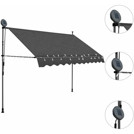 Diese manuell einziehbare Markise ist der ideale Schattenspender, entweder vor einem Fenster, auf der Terrasse, dem Balkon oder in Ihrem Garten. Diese wasser- und schmutzabweisende sowie UV- und wetterbeständige Markise besteht aus hochwertigem Polyester mit PU-Beschichtung. Der starke Stahlrahmen macht die Markise robust und langlebig. Das leicht zu reinigende Polyesterverdeck kann entfernt und gewaschen werden. Dank der Griffkurbel ist diese Markise einziehbar. Die Höhe und der Winkel der Markise können ebenfalls eingestellt werden. Darüber hinaus sorgen die solarbetriebenen LED-Leuchten nachts für energiesparende Beleuchtung. Die Markise ist leicht zu montieren. Diese Markise ist die perfekte Wahl für Ihren Außenbereich; sie lässt sich einfach von Hand bedienen.
