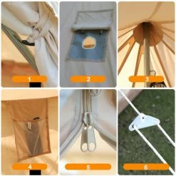 -4 VIER-JAHRESZEITEN-ZELT: Alle unsere Glockenzelte sind wasserdicht, da wir eine schwerelose WR-Behandlung (Wasser) verwendet haben, die die natürliche Atmungsaktivität von Baumwolle erhält. Es verfügt über eine 5-Zoll-Herdbuchse aus feuerfestem Material mit einer 43 x 43 cm großen Klappe, damit Sie sicher im Zelt kochen oder sich in einer kalten Nacht warm halten können, und eine Steckdose, um Ihr Telefon oder Ihren Laptop aufzuladen. Ideal für Camping und Glamping.