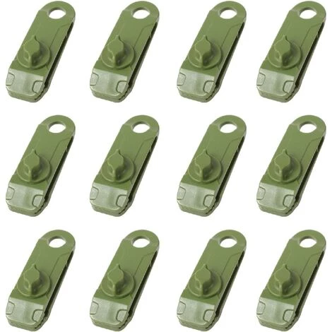 LANGRAY 12 Clips Campingzelt-Planen-Clips, Leichte Zelt-Clips, Zeltplane, Beachwear, Bergsteigen, Armeegrün