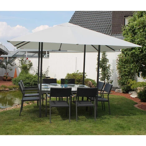 Der Leco Dining Pavillon bietet einen großzügigen Esstisch mit Überdachung. So sind Sie geschützt vor Sonne, aber auch leichter Regen tut Ihrer Gartenparty in Zukunft keinen Abbruch mehr. Der Tisch bietet problemlos Platz für bis zu 8 Personen und lädt so zu Grillabenden mit der Familie und Freunden ein. Das Gestell des Pavillons ist aus einem robusten Stahlrahmen gefertigt und bietet so eine gute Stabilität. Die Stahlrohre sind mit einer Pulverbeschichtung in anthrazit versehen und sind daher vor Witterungseinflüssen geschützt.