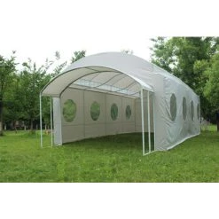 Das extragroße und stabile Partyzelt Michelle bietet mit einer überdachten Grundfläche von 36 m² den idealen Platz für alle Partys und Feste. Das robuste Gestell aus pulverbeschichteten Stahlrohren lässt sich einfach zusammenstecken und bietet eine stabile Konstruktion. Das abgerundete Dach sorgt für eine komfortable Firsthöhe und neben dem Schutz vor Wind und Sonne schützt es auch vor leichtem Nieselregen. Somit steht der nächsten Gartenparty nichts im Wege.