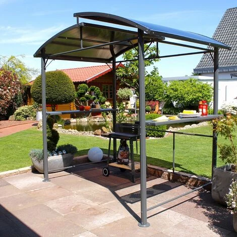 Unter dem Leco Grillpavillon müssen Sie nicht länger in der Sonne schwitzen während andere essen, denn das Dach aus Polycarbonatplatten bietet Schutz vor der Sonne. Auch bei einem sommerlichen Regenschauer sind ihr Grillgut und Sie sicher geschützt, und können unbeeindruckt weiter grillen.