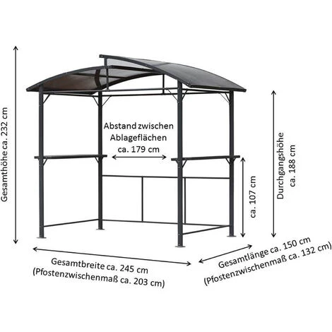 | Lieferumfang | Grillpavillon, seitliche Ablagetische, Aufbauanleitung |