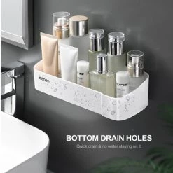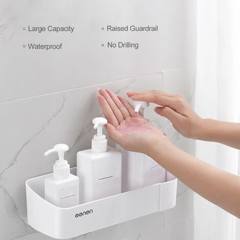 Eigenschaften:[Platzsparend] Das Ablagefach dient zur Aufbewahrung kleiner Gegenstände wie Shampoo, Spülung und Seife usw. Geeignet für enge Räume.[Kapazität 6,6 lb]Geeignet für die Aufbewahrung von Shampoo, Spülung, Seife, Rasierern, Rasierschaum und anderen Produkten in der Duschablage.[Erhöhte Leitplanke] Einfach abzunehmen und anzubringen, keine Sorge, dass die Flasche herunterfällt.[Stabile Installation] Wandregal mit Aufklebern sorgen für langfristige Nutzung, Arbeiten auf glatten Oberflächen wie Fliesen, Marmor, Glas, Holz und Edelstahl usw.[Abflusslöcher] Auf dem Regal mit Abflusslöchern bleibt nach dem Duschen kein Wasser zurück, es bleibt lange so gut wie neu.