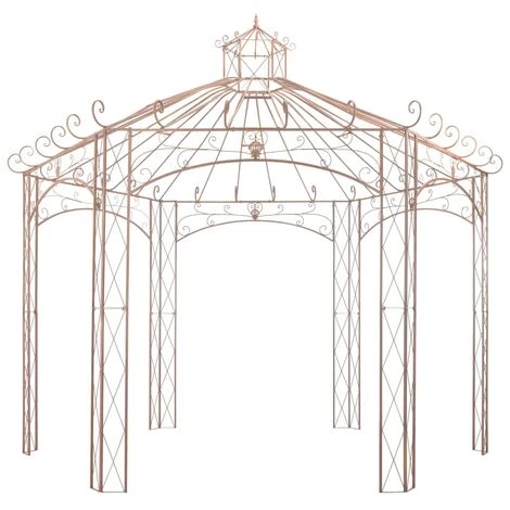 Dieser Gartenpavillon wird ganz bestimmt zum Blickfang und wunderschönen Schattenspender. Aus Schmiedeeisen gefertigt, bietet dieser Pavillon eine ganz stabile Stütze für Rosen und andere Kletterpflanzen. Die feine Verzierungen verleihen der Gartenlaube eine romantische Note und bringen Eleganz auf Ihre Terrasse bzw. in Ihren Garten. Darüber hinaus ist dieser Gartenpavillon mit seinem ästhetisch ansprechenden Bogendesign der ideale Schattenspender bei heißem Wetter. Des Weiteren ist der Pavillon auch ein wundervoller Platz für Kletterpflanzen wie Efeu, Waldrebe, Glyzinie, Reben, Blumen, usw. Hinweis: Dieser Artikel sollte NIEMALS bei rauen Wetterbedingungen, wie starkem Wind, Regenschauer, starkem Schneefall, Sturm, Hagel, usw., genutzt werden.