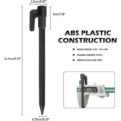 Material: Strapazierfähiger ABS-Kunststoff. Länge: 14,5 cm. Lieferumfang: 30 Zeltheringe aus ABS-Kunststoff mit rutschfesten Haken. Zeltheringe aus Kunststoff können dem Eindringen von starkem Wind und Regen widerstehen. Sie rosten nicht und sind langlebiger als gewöhnliche Zeltheringe aus Metall. Jeder Pfahl hat einen rutschfesten Haken, der die Kanten von Gegenständen effektiv binden kann. Perfekt zum Niederhalten von Zelten, Zäunen, Gartennetzen und Regenschutzhüllen. Ideal für Gartenarbeit, Landschaftsbau, Camping, Wandern, Strandspiele und andere Unterstützungsbedürfnisse.