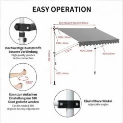 - Neigungswinkel der Markisen kann von 0° bis 180° verstellt werden