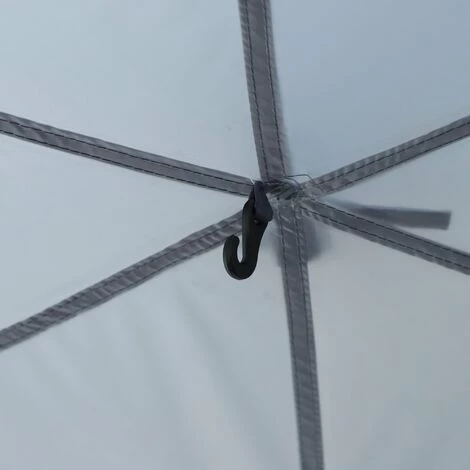 - – Umfangreiches Zubehör im Lieferumfang enthalten: 12 Heringe zur Bodenverankerung, 6 Spannseile, 2 Stützstangen (Vorzeltfunktion), Innenhaken zum Aufhängen eines Lichts, Transporttasche
