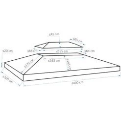 Unser Gartenpavillon aus Metall von Outsunny ist perfekt, wenn es um die Beschattung von sonnenbeschienenen Flächen im eigenen Garten geht. Durch die Verwendung von stabilen und witterungsbeständigen Materialien verspricht der Pavillon Langlebigkeit und hohe Funktionalität und eignet sich optimal für Feiern und ähnliche Veranstaltungen. Das Dach ist der Bestandteil des Pavillons, welcher am stärksten Witterungsbedingungen wie Sonneneinstrahlung, Regen, Wind und ähnlichem ausgesetzt ist. Daher können Sie bei uns Ersatzdächer für Ihren Metall-Gartenpavillon erwerben. Die Lieferung erfolgt ohne Gestänge!