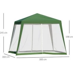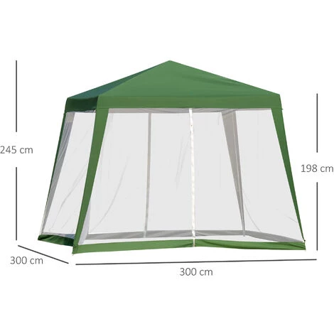 Dieser schicke Pavillon von Outsunny verwandelt Ihren Garten in eine Oase der Entspannung. Formschön und praktisch bietet Ihnen das Spitzdach Schutz vor Sonne und Regen. Der pulverbeschichtete Metallrahmen sorgt dafür, dass Sie diesen behaglichen Raum über Jahre genießen können. Dank der Seitenteile aus Netzstoff können Sie und Ihre Gäste sich entspannen ohne von Mücken und anderen Insekten gestört zu werden. Genießen Sie das Leben im Freien auf die angenehme Art!