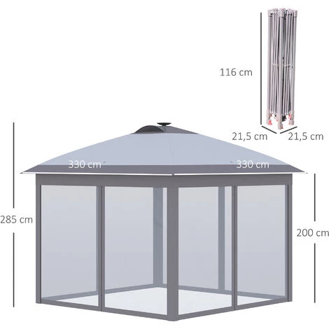- – Gesamtmaße: 330L x 330B x 285H cm