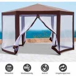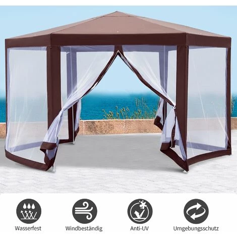 Dieser sechseckige Gartenpavillon von Outsunny ist stilvoll und lässt sich leicht aufbauen. Er ist ideal für Familienfeste, Hochzeiten, Picknicks und Campingausflüge. Dieser Pavillon ist robust und langlebig, er besteht aus einer hochwertigen Stahlstruktur mit weißer Pulverbeschichtung. Der Outsunny Pavillon ist so konzipiert, dass er Ihren Garten aufwertet und Ihnen und Ihrer Familie einen schattigen Platz zum Entspannen bietet.