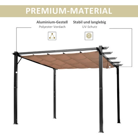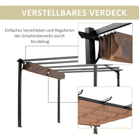 Mit dem einziehbaren Vordach der Pergola können Sie eine Freiluftatmosphäre schaffen und Ihre Gäste vor schädlichen UV-Strahlen schützen. Stellen Sie das Vordach dieser Pergola so ein, dass Sie die gewünschte Menge an Schatten erhalten, sodass Sie jederzeit perfekte Bedingungen vorfinden. Das Leben ist dazu da, im Freien genossen zu werden. Gehen Sie raus und genießen sie den Sommer mit einem Outsunny Partyzelt.