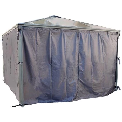 Vorhang-Set, passend zur Pavillon Serie Palermo und Milano. Das Vorhangset ist für den kompletten Pavillon und deckt alle Seiten ab. Die Befestigung erfolgt durch die im Pavillon inbegriffenen mitgelieferten Clips. Eingang in den Pavillon an jeder Seite mit Reissverschlusstür.