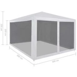 Hergestellt aus strapazierfähigem, pulverbeschichtetem Stahl, ist dieses Partyzelt extrem langlebig. Die Dachabdeckung ist aus hochwertigem PE gefertigt und somit wasser- und UV-beständig. Das Zelt hat vier Netz-Seitenwände, die Sie vor lästigen Insekten schützen. Und eine der Seitenwände hat einen Eingang mit Reißverschluss für einen einfachen Zugang. Das Partyzelt ist mit dem mitgelieferten Montagezubehör einfach zu installieren.