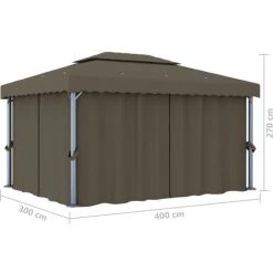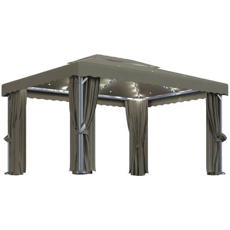 Er wurde entworfen, um einen kühlen Ort für Gartenpartys, Picknicks, Grillabende und andere gesellschaftliche Zusammenkünfte zu schaffen. Er besteht aus einem Aluminiumgestell und pulverbeschichteten Stahlrohren, welche eine hohe Stabilität und Langlebigkeit gewährleisten. Das Dach und die Seitenwände sind aus hochwertigem Polyestergewebe mit PA-Beschichtung gefertigt, das Sie vor schädlichen Sonnenstrahlen und mildem Regen schützt. Das ausgeklügelte Doppeldach sorgt für einen ausreichenden Luftstrom im Inneren. Zudem sind auch Vorhänge und Moskitonetze im Lieferumfang enthalten, um vollständigen Schutz sowie zusätzliche Privatsphäre zu bieten und gleichzeitig lästige Mücken und andere Insekten fernzuhalten. Zur einfachen Befestigung sind Klettverschlüsse auch dabei. Darüber hinaus schafft die Lichterkette eine gemütliche Atmosphäre im Garten bei Sonnenuntergang. Die Leuchten sind umweltfreundlich, da sie tagsüber durch Sonnenenergie aufgeladen werden.