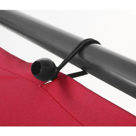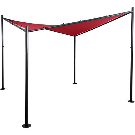 Dank der Schräge kann das Regenwasser sich nicht auf dem Dach ansammeln und zu unerwünschten Sturzfluten führen. Somit ist die Pergola noch besser auf Regenschauer vorbereitet. Grundsätzlich empfehlen wir, das Dach vor größeren Regenschauern abzubauen. Ebenso müssen wir darauf hinweisen, dass bei Schnee der Bezug demontiert werden muss, da die Dachstreben für diese Last nicht ausgelegt sind. Die Pergola wird mit Schrauben montiert. Diese sind aus Stahl und können – da es sich um Schrauben handelt – nicht pulverbeschichtet werden. Daher werden diese unter normaler Witterung mit der Zeit rosten. Dieser Rost wird jedoch meist erst bei der Demontage des Daches sichtbar. Sofern das stört kann der Rost mit handelsüblichen Rostentferner von Ihnen leicht entfernt werden.