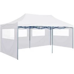 Das Gartenzelt verfügt über ein UV- und wasserbeständiges Dach aus 600D Oxford-Gewebe mit PVC-Beschichtung und ist daher für den Außenbereich ideal geeignet. Das Partyzelt ist mit 4 Seitenwänden mit durchsichtigen Fenstern ausgestattet, um vollständigen Schutz zu gewährleisten. Der Rahmen ist aus rostfreiem pulverbeschichtetem Stahl gefertigt und macht das Gartenzelt stabil und langlebig. Das Pop-Up-Partyzelt ist zudem faltbar und lässt sich dadurch einfach verstauen und transportieren. Es ist leicht zu montieren.