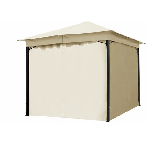 Bestücken Sie Ihren Gartenpavillon mit farblich passenden Seitenteilen. Diese werten Ihren Pavillon nicht nur optisch auf, sondern schaffen auch ein Gefühl von Gemütlichkeit. Ihr Gartenpavillon wirkt gleich viel einladender und die Seitenteile bilden zudem die perfekte Harmonie mit der Konstruktion des Pavillons. Im Set sind alle vier Seitenteile aus ca. 180g /m² starkem Polyester mit PA-Beschichtung enthalten. Die Montage der Seitenteile ist leicht und unkompliziert zu bewerkstelligen: Montieren Sie die Seitenteile einfach mit Befestigungsringen an der Gardinenstange Ihres Gartenpavillons. Ob Sie diese nun geöffnet, teilweise verschließen oder komplett verschließen, können Sie zu jeder Zeit flexibel und spontan entscheiden. Gestalten Sie Ihren Gartenpavillon so, wie es Ihnen gefällt!