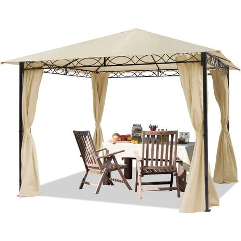 Dank des hochwertigen Klicksystems geht der Aufbau schnell und leicht von der Hand. Dieser Pavillon, mit einem UV-Schutz von 50+, ist mehr als ein effektiver Schattenspender. Das Dach aus ca. 180 g/m² Polyester ist zu 100 % wasserdicht und macht den stabilen Pavillon mit seiner pulverbeschichteten Stahl-Konstruktion die ganze Saison hindurch zu einem zuverlässigen Partner. Egal ob bei Hitze oder Regen, dank dieser erstklassigen Kombination aus Konstruktion und Dachplane können Sie bei jedem Wetter einzigartige Momente und Feste mit Ihre Liebsten im Garten teilen.