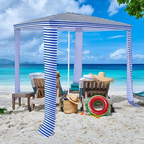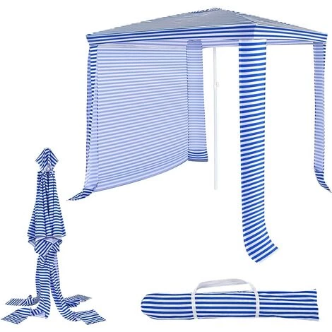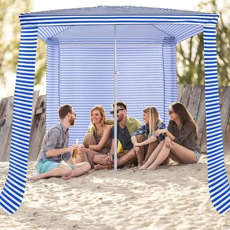 Dieser tragbare Sonnenschirm ist Ihr Lebensfreunde! Die Fläche von 202 × 202 cm und die Sonnenschutzbeschichtung können Ihrer ganzen Familie Schatten spenden, und die Seitenwand mit Reißverschluss ist auch bequem für Sie zu demontieren oder zu installieren, je nach Bedarf. An der Schirmsäule befindet sich auch ein Höhenverstellknopf, den Sie frei zwischen 233-270 cm einstellen können. Dank hochwertiger Materialien hat der Sonnenschirm eine sehr starke Konstruktion. Vier Ecktaschen können auch als Sandsäcke verwendet werden, um den Schirm stabiler zu machen. Eine Tragetasche ist ebenfalls enthalten, sodass Sie sie platzsparend verstauen können, wenn sie nicht verwendet wird oder sie zum Camping und Picknick mitnehmen können, wodurch Sie Zeit und Sorgen sparen. Zögern Sie nicht!